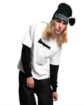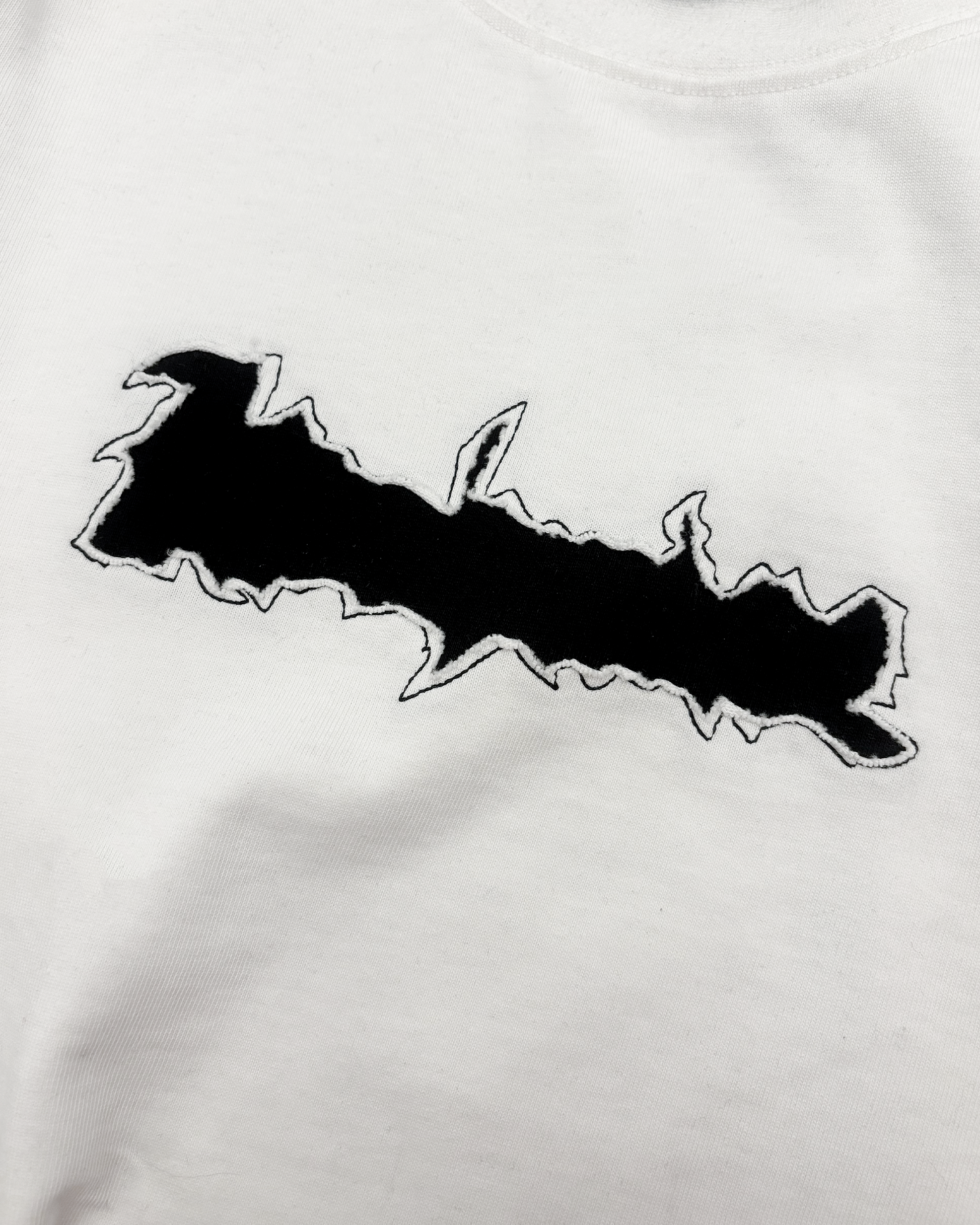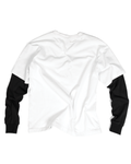 Black & White Double layer longsleeve with a distress that forms the logo & an embroidery on the chest